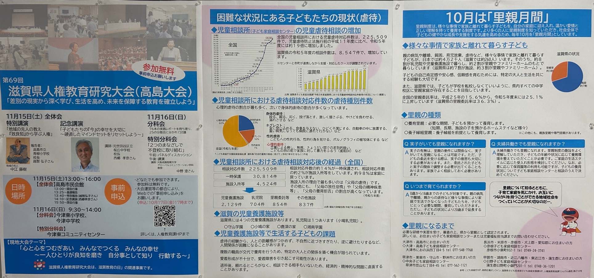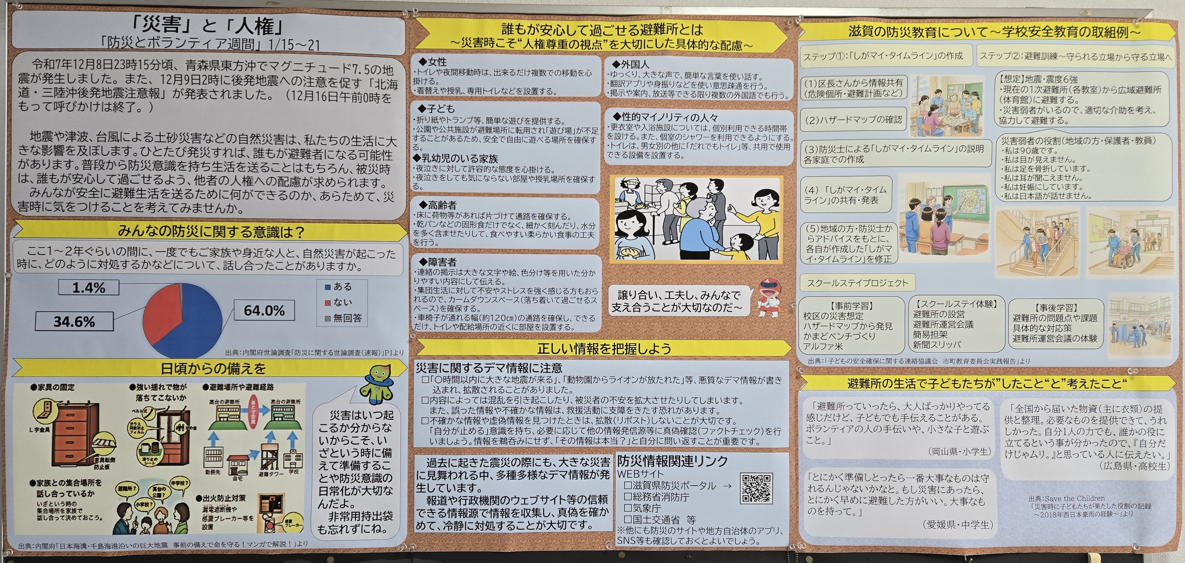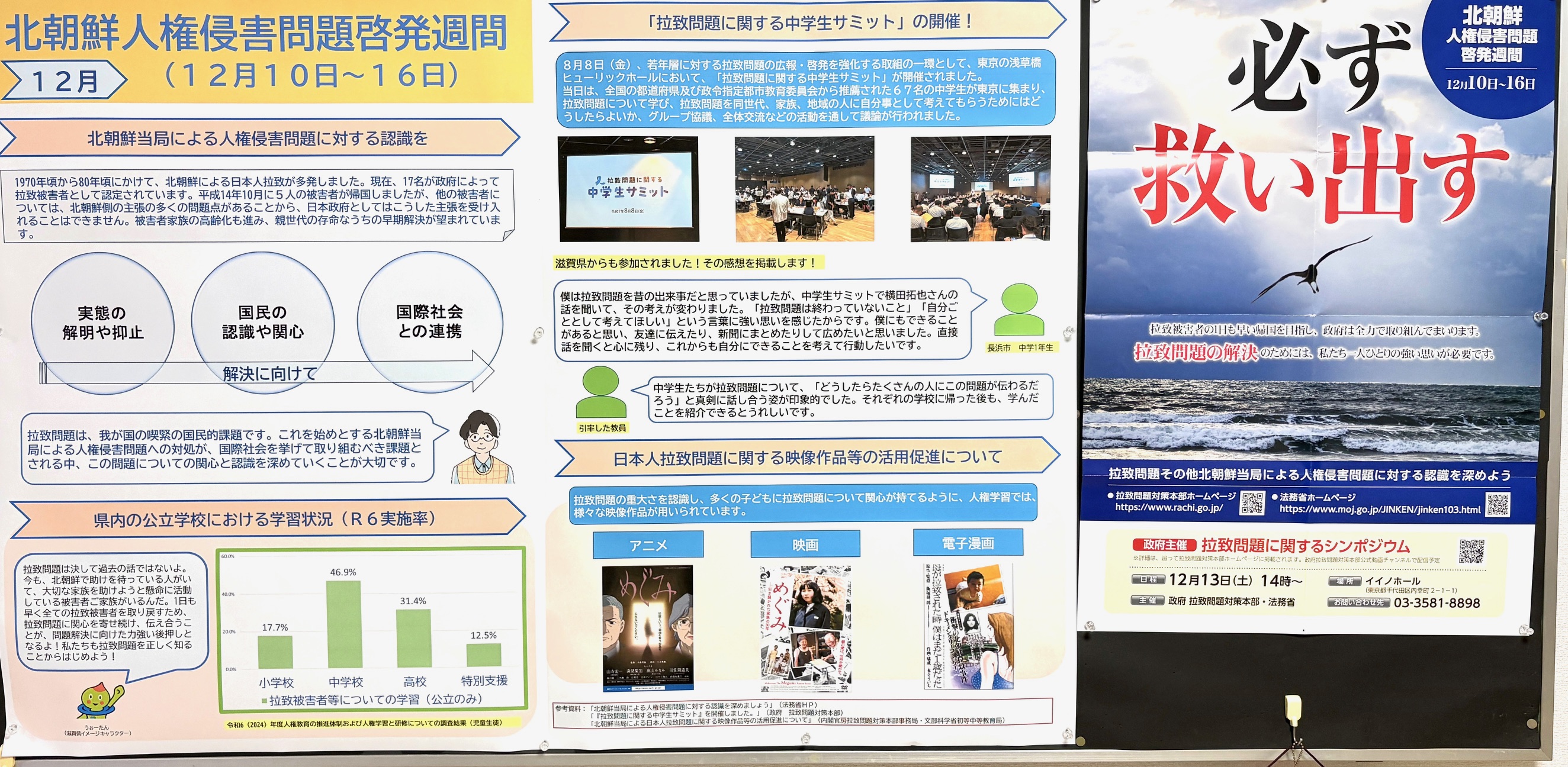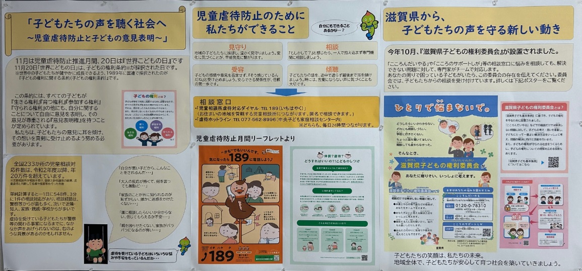 滋賀県庁新館5階の西エレベーター前に人権掲示板があります。 来庁の際にはご覧ください。