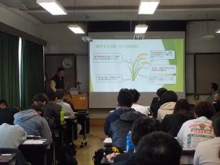 就農地のある農業農村振興事務所や市・町、JAなどの関係機関の出席を得て、就農科19期生5名と養成科2年生1名の就農計画発表会を開催しました。農大での研修を終え、各自の就農計画について、就農を目指すきっかけや経営理念・方針から始まり、経営品目・規模、労働力、販売計画、経営収支など具体的な数字を用いながら、スライドを使って発表が行われました。経営理念や屋号、農園のロゴマークなどに込めた思いが語られ、各自の就農計画は今後の期待感を抱かされるものばかりでした。3月7日の修了式・卒業式の後は、本格的に営農を開始される予定です。