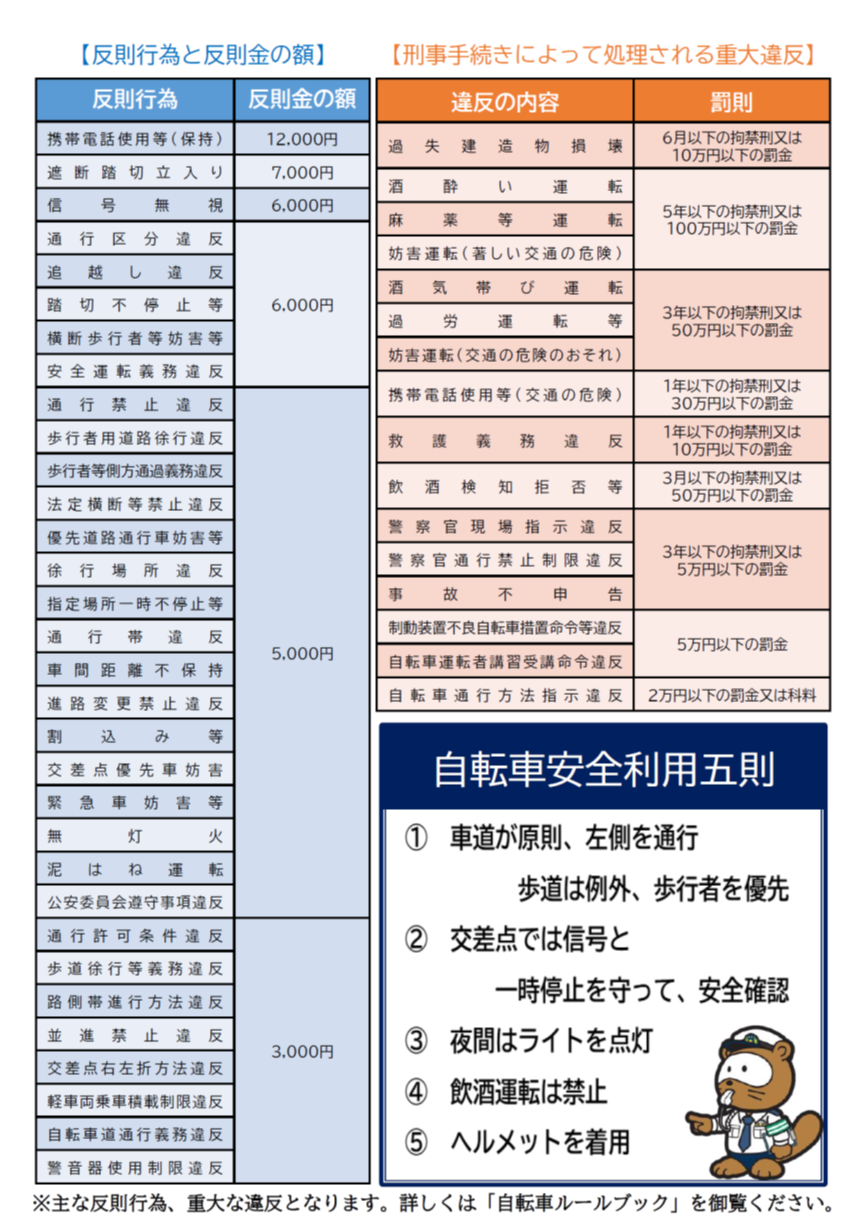 また、詳細な内容については警察庁ホームページの発表資料に添付されているPDFファイル(自転のルールブック)をご確認ください。